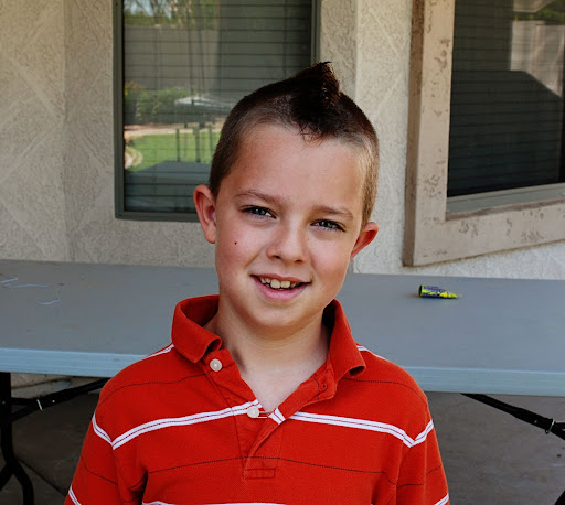 The one below you can see it more clearly. He’s still playing around with how much gel to use and trying to see how high he can get it to go. This was just the first day…he really likes to spike it high now.:)